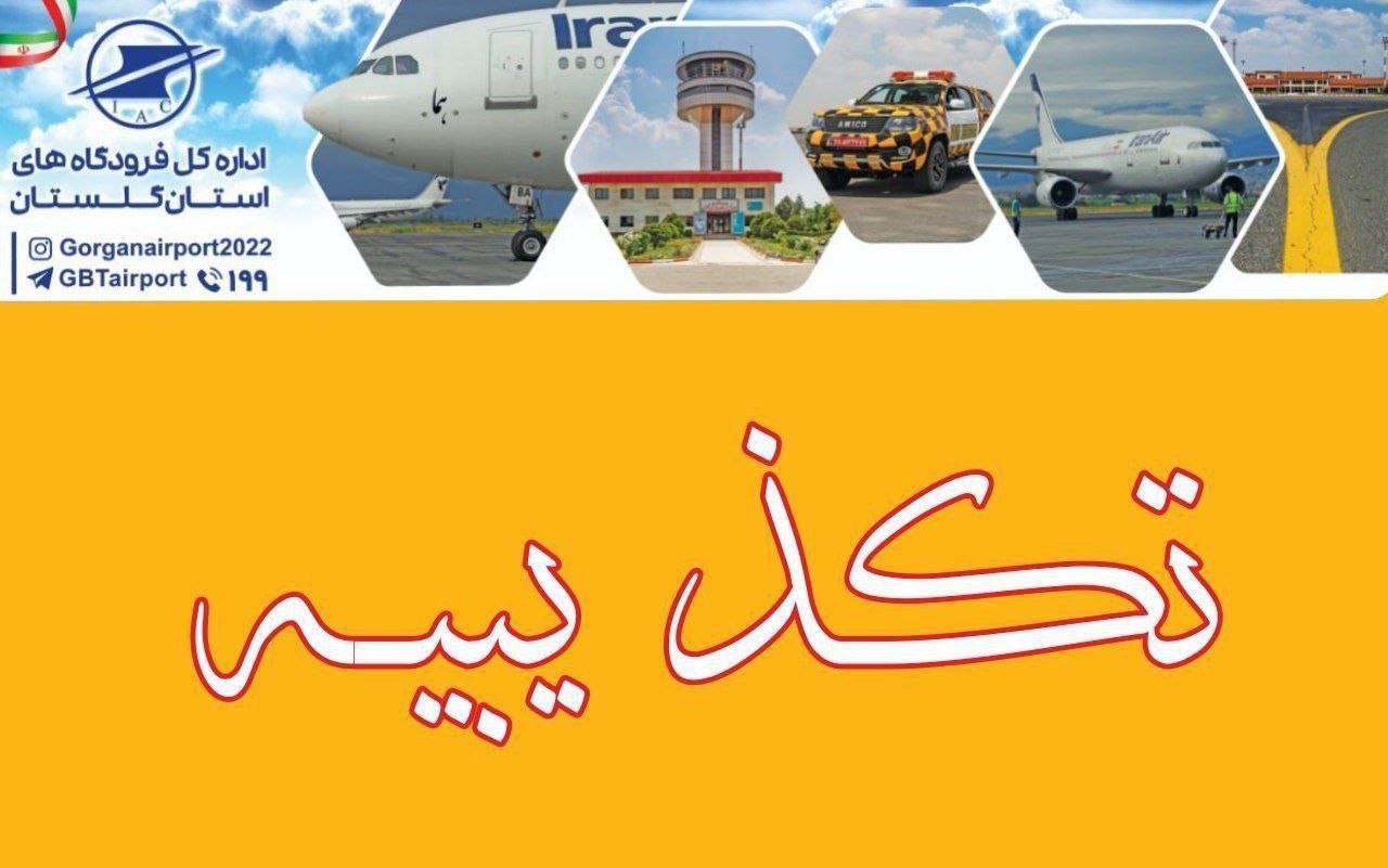 متن اطلاعیه روابط عمومی فرودگاههای گلستان به شرح زیر می باشد: