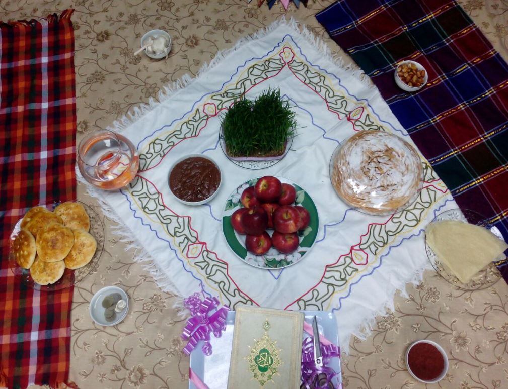 امسال در نوروزگاه مراوه تپه که در کنار آرامگاه مختوقلی فراغی برپا شده است، در یکی از غرفه های صنایع ستی و گردشگری شهرستان، سفره هفت سینی زیبا نیز چیده شده است.