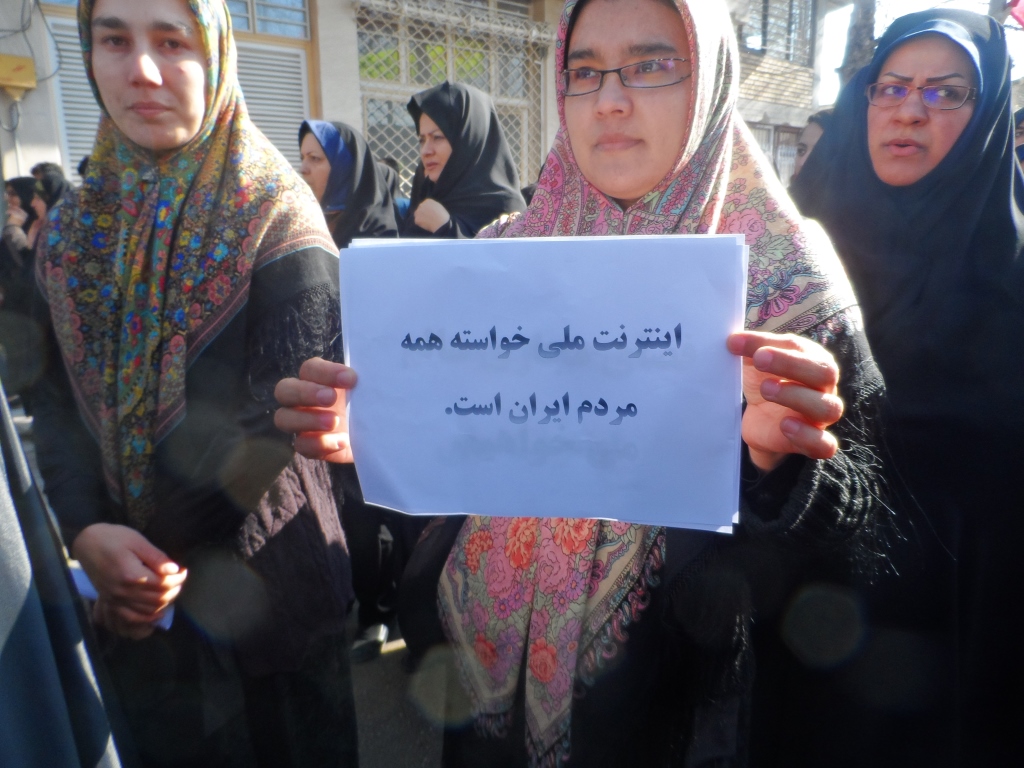 بر روی برگه هایی که مردم کلاله ای در دست داشتند، اینترنت ملی و فضای مجازی سالم از دولت درخواست شده بود.